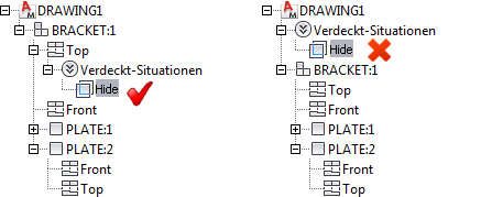 In einer Zeichnung mit Mechanical-Struktur ist es wichtig, welche Position die Verdeckt-Situation darin einnimmt.