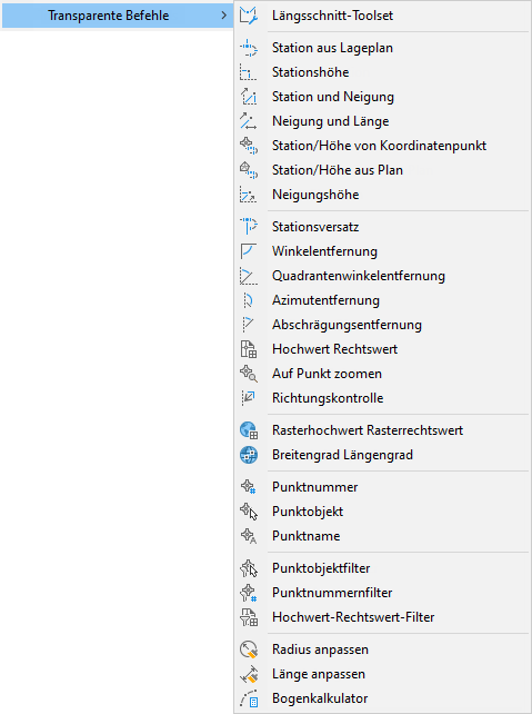 Einige der transparenten Autodesk Civil 3D-Befehle erfordern eine Z-Koordinate für die Punkthöhe. Weitere Informationen finden Sie unter Informationen zu Einstellungen für transparente Befehle.