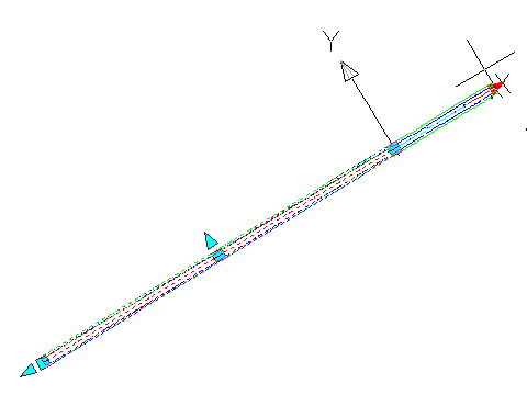 Hiermit wird die gesamte Haltung an einen neuen Punkt verschoben. Bei einer gekrümmten Haltung verhält sich der Mittelpunkt-Griff wie bei AutoCAD-Bogenobjekten: Die Endpunkte werden beibehalten, und der Cursor dient als Zwangsposition.