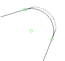 Wenn der Bogen keine Tangente ist, bleiben Start- und Endpunkte beim Ändern des Radius erhalten.