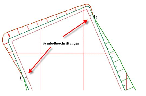 Wenn Sie Symbolbeschriftung auswählen, werden Symbole an den Positionen eingefügt, an denen Zellen unregelmäßig sind, und Informationen zu diesen Punkten werden in eine Tabelle der Zeichnung eingefügt.