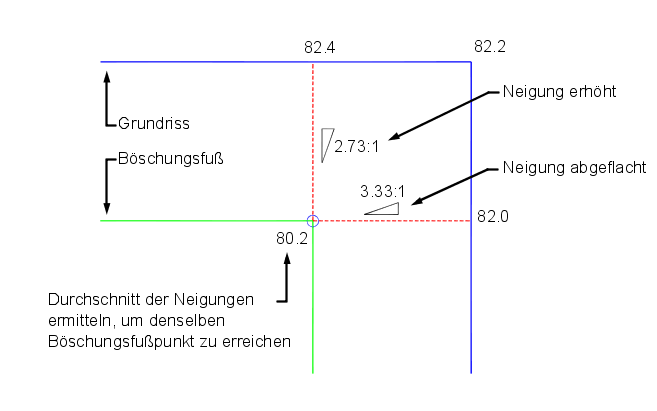Durchschnittliche Neigung verwenden: Erstellt einen Durchschnitt der Neigungen, um den gleichen Böschungsfußpunkt zu erreichen.