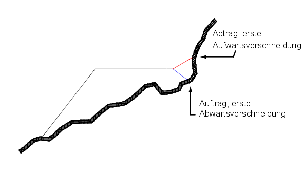Anmerkung: Technisch betrachtet, handelt es sich bei beiden Situationen um einen "Auftrag". Autodesk Civil 3D verarbeitet die Aufwärtsneigung jedoch als Abtrag und die Abwärtsneigung als Auftrag.