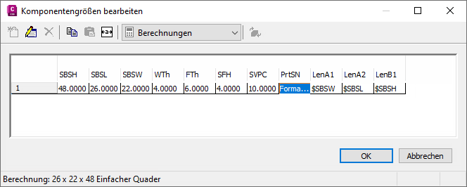 Anmerkung: Im Modell festgelegte berechnete Werte können im Dialogfeld Komponentengrößen bearbeiten nicht bearbeitet werden. Um diese Werte zu ändern, müssen Sie das Modell bearbeiten.