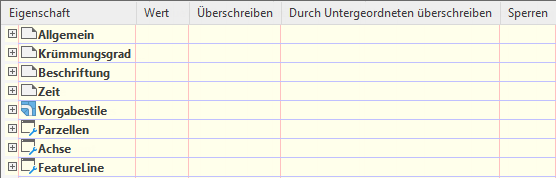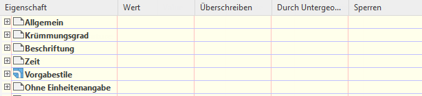 Auf der Objektsammlungsebene in der Struktur Einstellungen können Sie alle Einstellungen des Objekttyps steuern. Ändern Sie die Objekteinstellungen auf dieser Ebene der Struktur und legen Sie Überschreibungen für Zeichnungs-Umgebungseinstellungen fest.