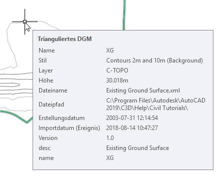 Sie können diese Eigenschaftssatz-Daten in der AutoCAD-Eigenschaftenpalette sowie in der QuickInfo anzeigen.