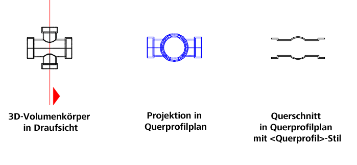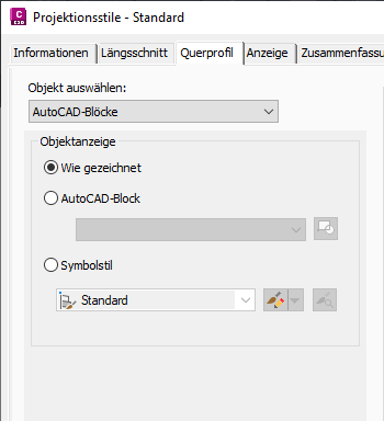 Für projizierte Objekte in Querprofilplänen werden die folgenden Stile verwendet: