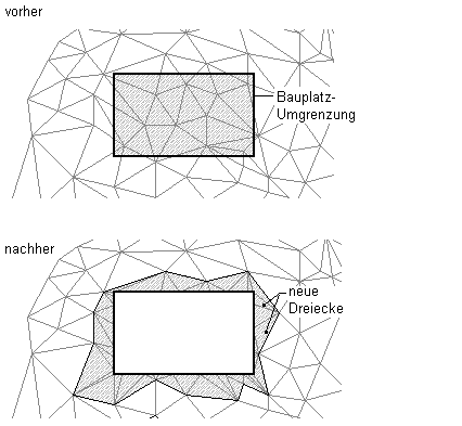 Eine Begrenzung wirkt sich auf die Sichtbarkeit der darin enthaltenen DGM-Dreiecke aus.