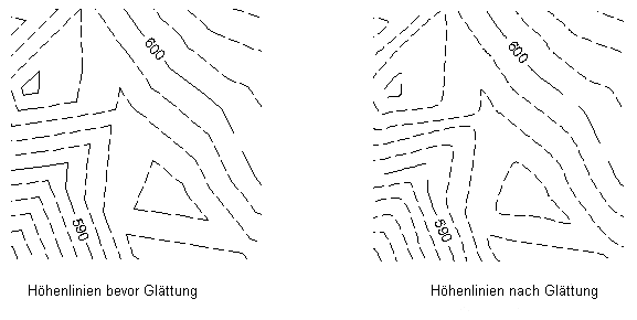 DGM-Glättung erzeugt geglättete Höhenlinien ohne Überlappungen: