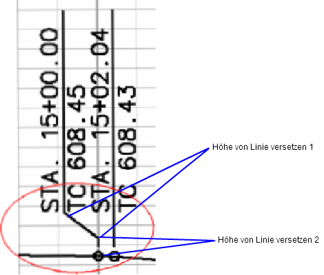 In dem folgenden Arbeitsablauf wird beschrieben, wie die Höhenplanbeschriftungen versetzt angeordnet werden und wie dieselben Konzepte auf das Einrichten der Querprofilplanbeschriftungen angewendet werden können.