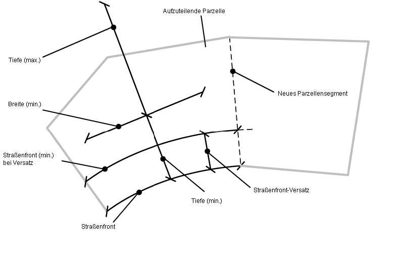 Sie können beim Erstellen oder Bearbeiten von Parzellen durch das Unterteilen von vorhandenen Parzellen Größenanpassungskriterien definieren.