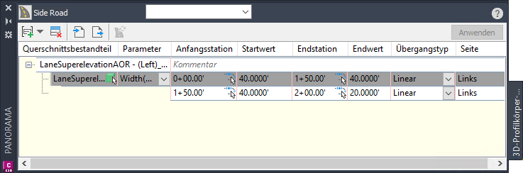 Sie können auch Werte in der Panorama-Ansicht 3D-Profilkörper-Übergang angeben.