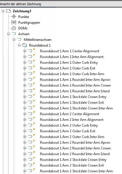 Verwenden Sie die Kreisverkehr-Sammlung in der Strukturansicht, um auf die Kreisverkehrsplätze in einer Zeichnung zuzugreifen.