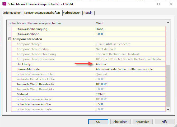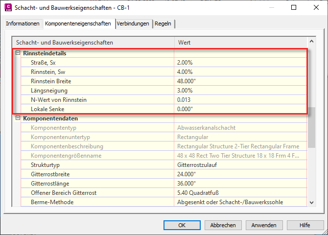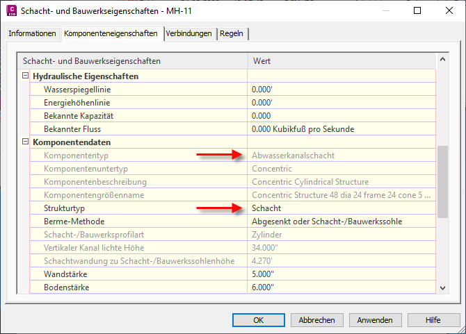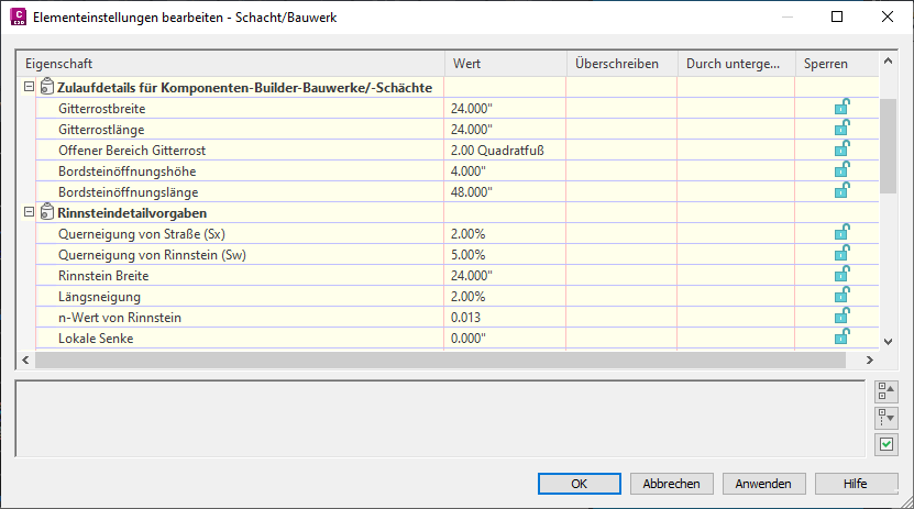 Vorgabeeinstellungen für Schächte und Bauwerke können Sie im Dialogfeld Elementeinstellungen bearbeiten – Schacht/Bauwerk angeben.