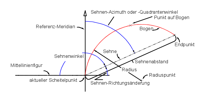 | Sehnenwinkel | Winkel im Uhrzeigersinn, der vom letzten Scheitelpunkt in den Linienzug gezogen wird |