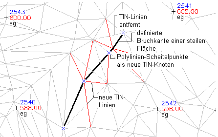 Für die Definition von Bruchkanten an steilen Flächen werden zwei Methoden verwendet: