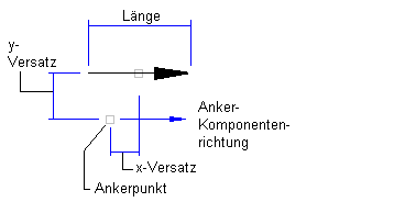 Gibt den Versatzabstand zwischen dem Mittelpunkt des Richtungspfeils und der Anschlusskomponente in X-Richtung an.