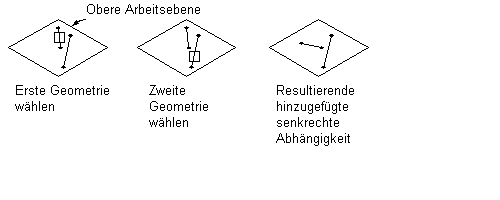 Kann zwischen einer Linie oder Kurve und einer Kurve definiert werden. (Zwei Linien können nicht normal zueinander ausgerichtet sein; stattdessen muss eine senkrechte Abhängigkeit verwendet werden.) Die Kurven schneiden sich, und die Richtungen der Kurventangenten verlaufen senkrecht zum Schnittpunkt. Häufig wird diese Abhängigkeit verwendet, um eine Linie von der Normalen einer Ellipse abhängig zu machen.