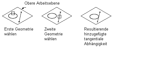 Kann zwischen Kurvengeometrie (z. B. einem Kreis oder Bogen) und einer weiteren Kurvengeometrie oder einer Linie definiert werden. Richtet zwei Kurven tangential zueinander aus, auch wenn sie keinen gemeinsamen Punkt haben. Tangenten werden in der Regel verwendet, um eine Linie von einem Bogen oder Kreis abhängig zu machen.