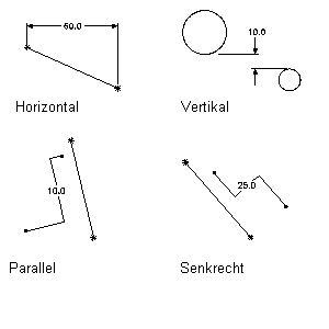 Kann für Geometriepaare aller Typen festgelegt werden. Definiert einen Wert zwischen zwei Elementen in einer horizontalen Richtung. Der Wert einer Entfernungsbemaßung kann nicht negativ sein.