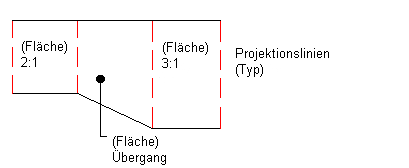 Beispiel: Ein Verschneidungsbereich weist eine Neigung von 3:1 auf, während die Neigung bei einem anderen Verschneidungsbereich 2:1 ist. Diese beiden Bereiche sind durch einen Übergangsbereich getrennt, in dem die Neigung von 3:1 auf 2:1 übergeht. Bereiche, denen Kriterien zugeordnet wurden, werden als Kontrollregion bezeichnet.