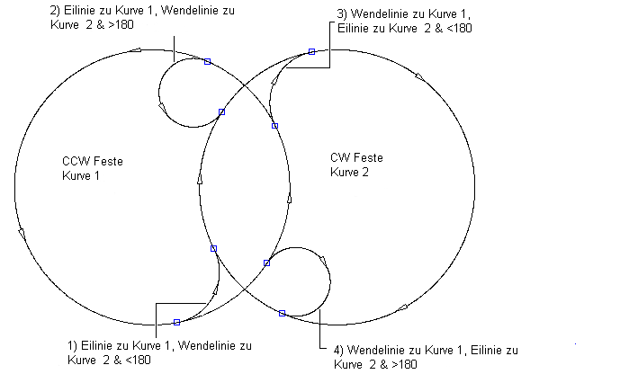 Die folgende Abbildung zeigt eine Ausrundung als Pufferelement zwischen einem Festelement in Form eines Bogens im Uhrzeigersinn und eines Bogens gegen den Uhrzeigersinn: