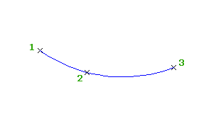 Die Abbildung zeigt ein Festelement (Bogen) vom Anfangspunkt (1) bis zu den angegebenen Punkten (2 und 3).