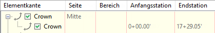 Aus einem 3D-Profilkörper extrahierte Elementkanten werden unabhängig von der Anfangsstation des 3D-Profilkörperbereichs beginnend bei Station 0+00 stationiert.