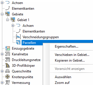Sie können auf diese Eigenschaften zugreifen, indem Sie unter der benannten Gebietssammlung mit der rechten Maustaste auf die Parzellensammlung klicken.