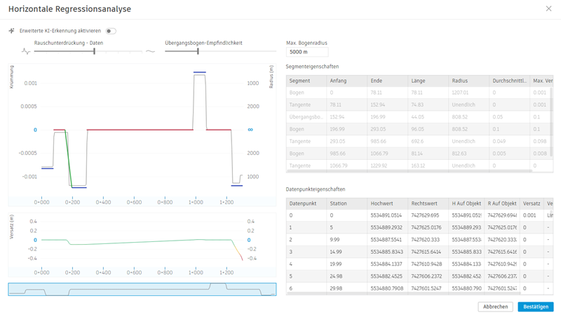 - Öffnen Sie das Dialogfeld Horizontale Abweichung - Einrichtung.
