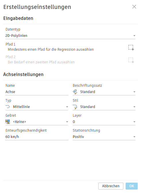 . Dieser Schritt ist optional. Wenn Sie Pfad 2 auswählen, ist die Ausgabe der Regression die MITTELLINIE zwischen Pfad 1 und Pfad 2.