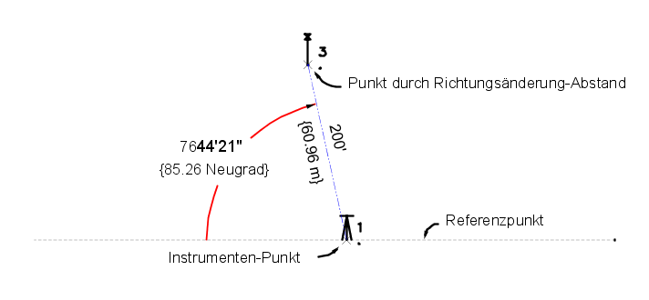 | Winkel | Im Verhältnis zum Punkt gemessener Abschrägungswinkel. Geben Sie diesen Wert in den aktuellen Winkeleinheiten ein (DMS, Grad, Dezimalgrad, Millisekunden oder Radianten). |