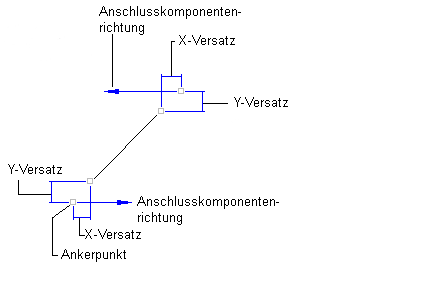- Anfangspunkt und Endpunkt: Bei dieser Methode verankern Sie den Anfangspunkt und den Endpunkt der Linienkomponente. Die Länge und der Winkel der Linie werden durch die Position der Ankerobjekte bestimmt und beim Bearbeiten der Anschlusskomponenten angepasst. Die nachstehende Abbildung zeigt eine Linie, die mit dieser Methode definiert wurde: