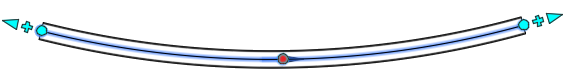 Die folgende Abbildung zeigt einen ausgewählten Radiusgriff und die Darstellungssymbole der Geometrie der gekrümmten Haltung, wenn der Radius angepasst wird.