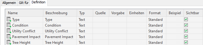 Möglicherweise haben Sie Punkten wie Baumart, Bedingung und anderen Daten benutzerdefinierte Eigenschaftsinformationen zugewiesen.