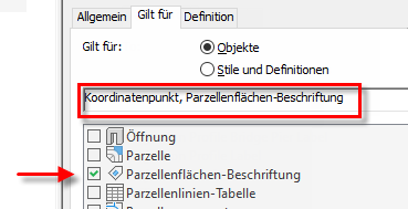 Wählen Sie zum Beschriften von Autodesk Civil 3D-Punkten auf der Registerkarte Anwenden auf die Option Koordinatenpunkt als Objekttyp aus.