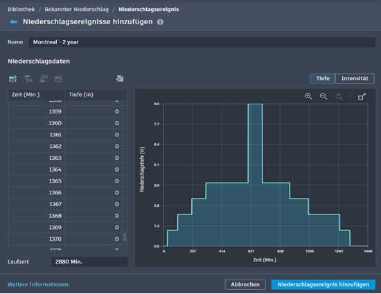 - Ändern Sie die Laufzeit für das Niederschlagsereignis.