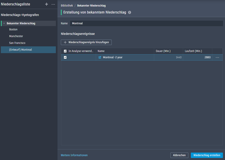 Niederschlagsereignis öffnen, oder klicken Sie auf