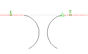 Mit diesem Befehl können Sie die Neigung eines Segments über eine Lücke auf einen Punkt auf einer anderen Elementkante übertragen. Beispielsweise können Sie eine Neigung über einen Schnittpunkt erweitern.