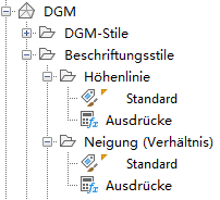 Klicken Sie auf das Feld +/-, um die Sammlung zu erweitern und die Beschriftungsstile für das Objekt anzuzeigen. Einige Objekte verfügen über mehrere Beschriftungsstilebenen.
