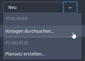 - Klicken Sie auf den Abwärtspfeil, um weitere Optionen zum Auswählen der zu verwendenden Vorlage anzuzeigen und einen Plansatz zu erstellen.