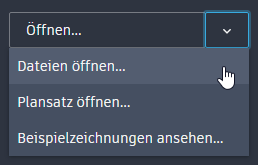- Klicken Sie auf den Abwärtspfeil, um weitere Optionen zum Öffnen von Plansätzen oder Beispielzeichnungen anzuzeigen.