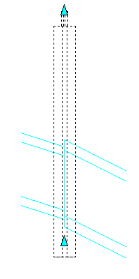 Beim Anzeigen von Schächten/Bauwerken in einem Höhenplan können Sie deren Schachtwandung oder Sumpftiefe mithilfe von Griffen anpassen. In der folgenden Abbildung befindet sich der Schachtwandungsgriff am oberen Ende des Schachts/Bauwerks. Der Sumpftiefengriff befindet sich unmittelbar über dem Boden des Schachts/Bauwerks.