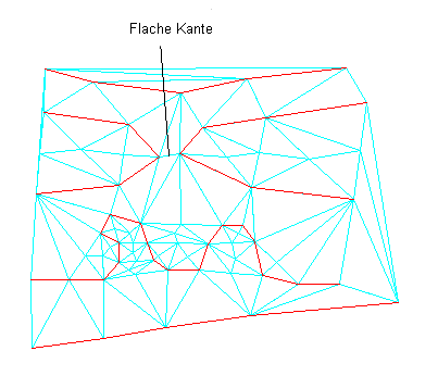 Mit dieser Option werden mehr flache Dreiecke entfernt als mit der Option Umdrehen von Kanten. Jedes Dreieck, das von der Option Umdrehen von Kanten entfernt würde, wird auch von dieser Option entfernt. Diese Option führt darüber hinaus im Allgemeinen zu weniger steilen Dreiecken. Jedoch werden dem DGM zusätzliche Punkte und Dreiecke hinzugefügt: