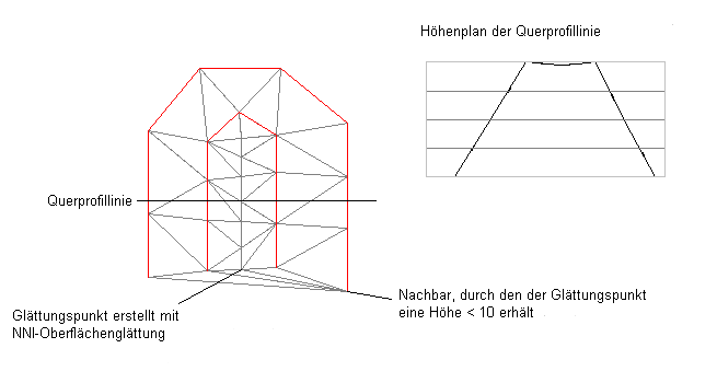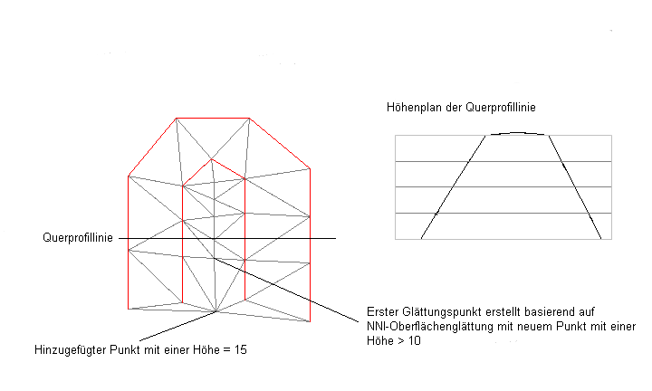 Mit diesem Befehl wird die Anzahl von ebenen Flächen reduziert, die sich aus dem Hinzufügen von Höhenliniendaten zu einem DGM ergeben. Hierdurch kann ein realitätsnahes DGM-Modell erstellt werden.