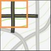 - Ermöglicht das Definieren eines Bereichs, in den InfraWorks-Daten importiert werden sollen. Indem Sie auf Bereich auswählen klicken, wird eine Online-Karte in der Zeichnung angezeigt, sodass Sie den auszuwählenden Bereich sehen können. Wenn Sie einen Bereich der Karte auswählen, dient das Auswahlrechteck als Begrenzung für die DGMs, die in Autodesk Civil 3D importiert werden. Andere Objekte, wie Straßen, die sich innerhalb des Auswahlfensters befinden oder es queren, werden vollständig in Autodesk Civil 3D importiert.