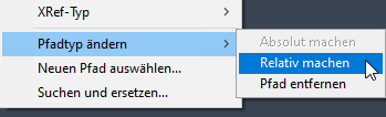 Überprüfen Sie alle Projektdateien vor der Migration in Forma Data Management. Stellen Sie in Civil 3D sicher, dass alle externen Referenzen mit einem relativen Pfad verbunden sind. Im Manager für externe Referenzen können mehrere Dateien mit dem Befehl Relativ machen ausgewählt und geändert werden.
