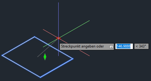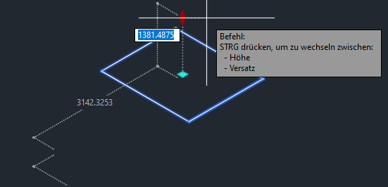 Mit dem grünen rautenförmigen Griff können Sie die Höhe oder den vertikalen Versatz des unterirdischen Speichers anpassen. Die Bewegung dieses Griffs ist an die Z-Achse gebunden.