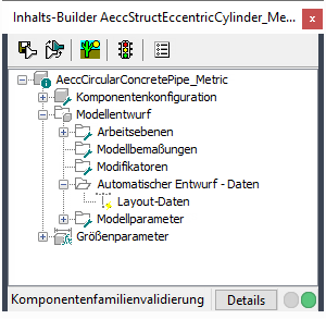 Nach Fertigstellung des Komponentenmodells müssen Sie den Platzierungspunkt für die Komponente definieren, damit diese korrekt in eine Zeichnung eingefügt werden kann. Mithilfe der Option Automatisches Layout Daten im Komponenten-Browser können Sie festlegen, wie Platzierungspunkte definiert werden können. Wenn Sie diese Option aktivieren, ist im Komponenten-Browser ein entsprechender Ordner verfügbar, der Befehle zum Hinzufügen von Platzierungspunkten umfasst.