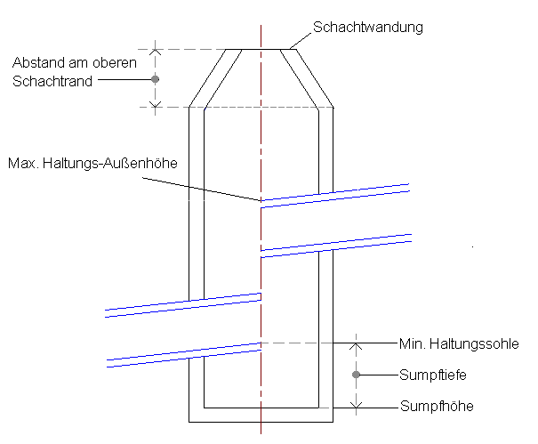 Falls keine Haltungen an einen Abwasserkanalschacht angeschlossen sind, hat die lichte Höhe des vertikalen Kanals und die Schachtwandung Vorrang vor der Schachtsohle.